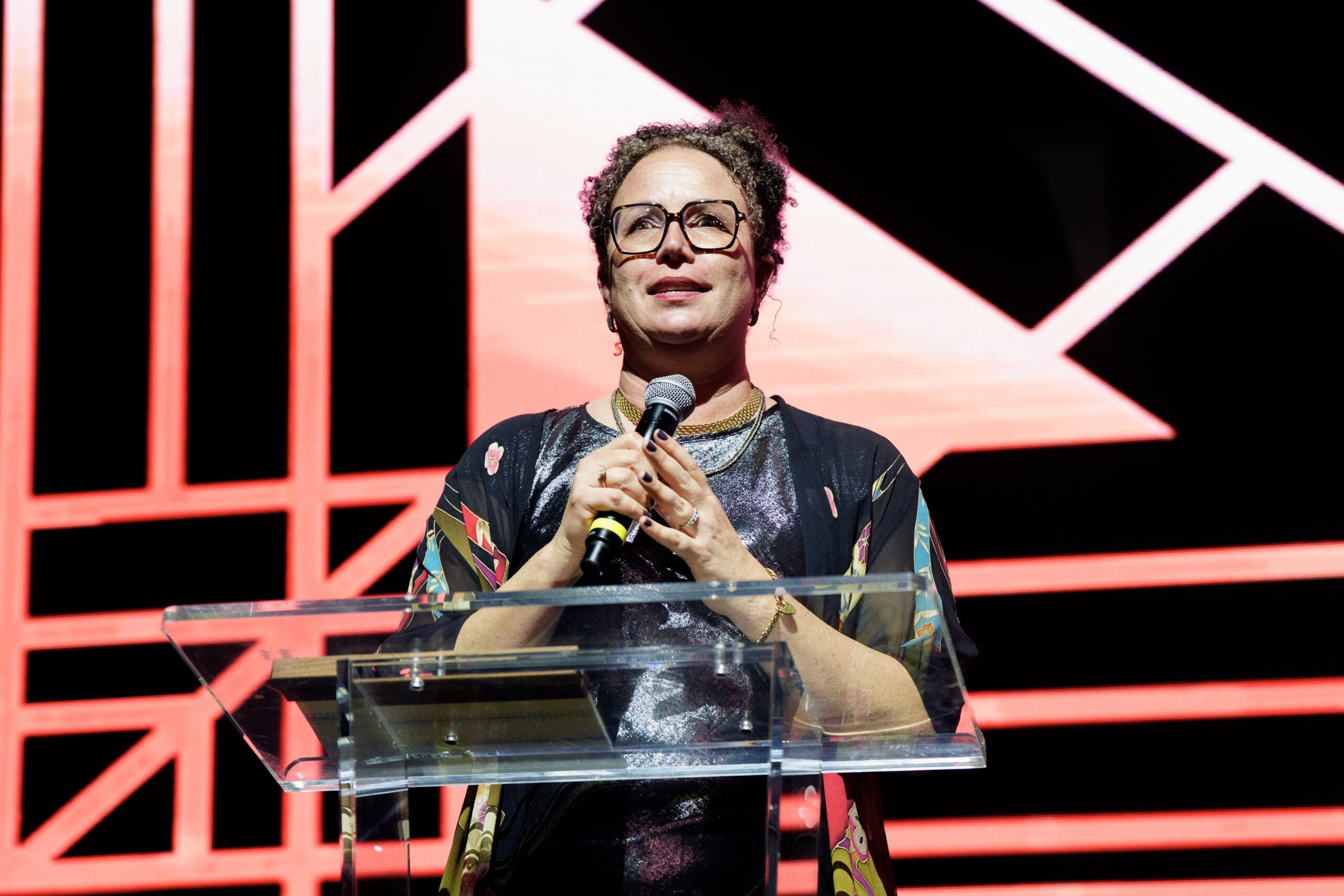 NEW ORLEANS, LOUISIANA - OCTOBER 24:Darcy McKinnon speaks onstage during the 2025 New Orleans Film Festival Gala at the Civic Theater on October 24, 2025 in New Orleans, Louisiana. McKinnon was honored with the Lumiere Award. (Photo by Erika Goldring)