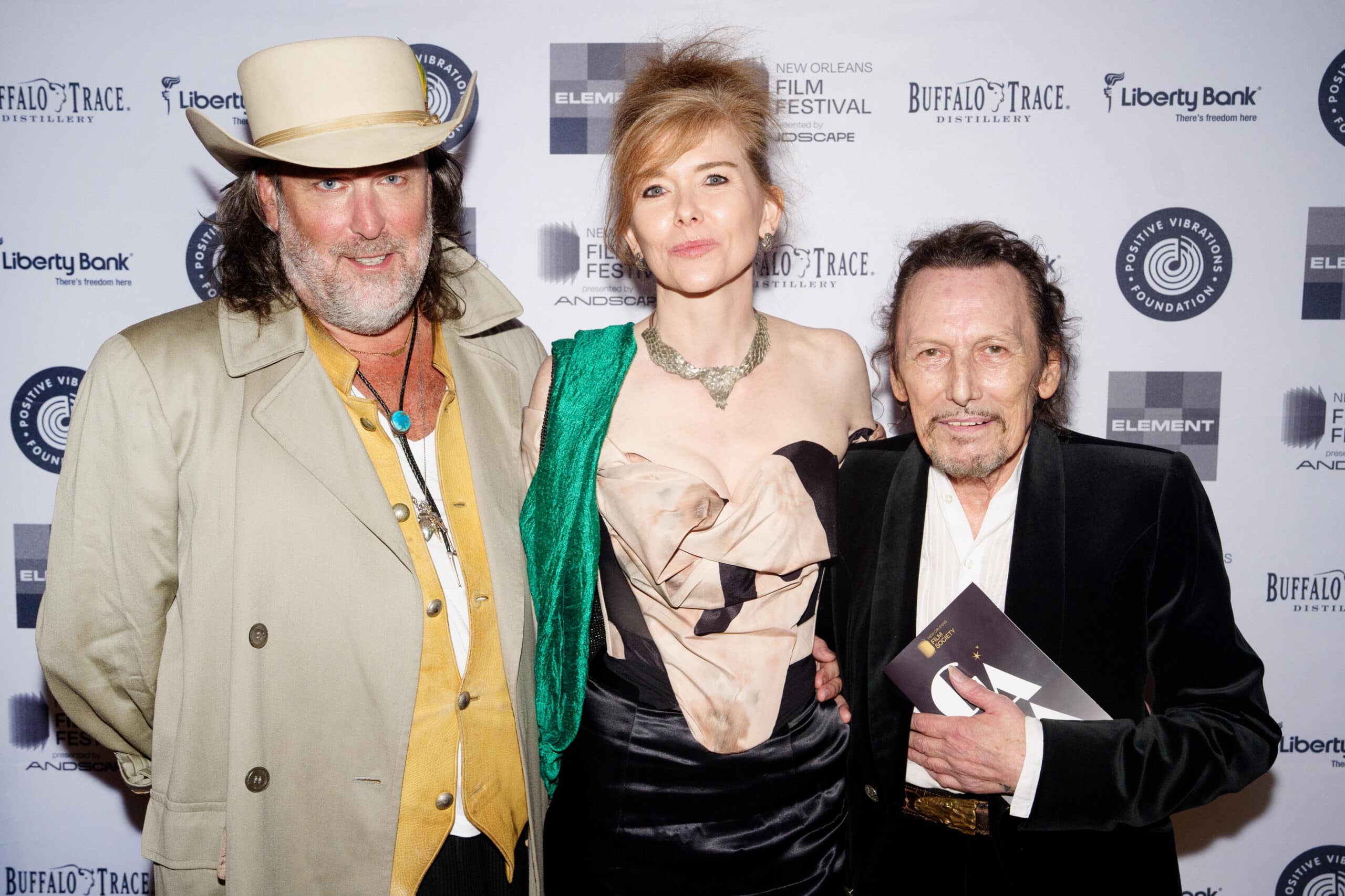 NEW ORLEANS, LOUISIANA - OCTOBER 24: Nathaniel Rateliff, Lucinda Williams and CC Adcock backstage the 2025 New Orleans Film Festival Gala at the Civic Theater on October 24, 2025 in New Orleans, Louisiana. (Photo by Erika Goldring)