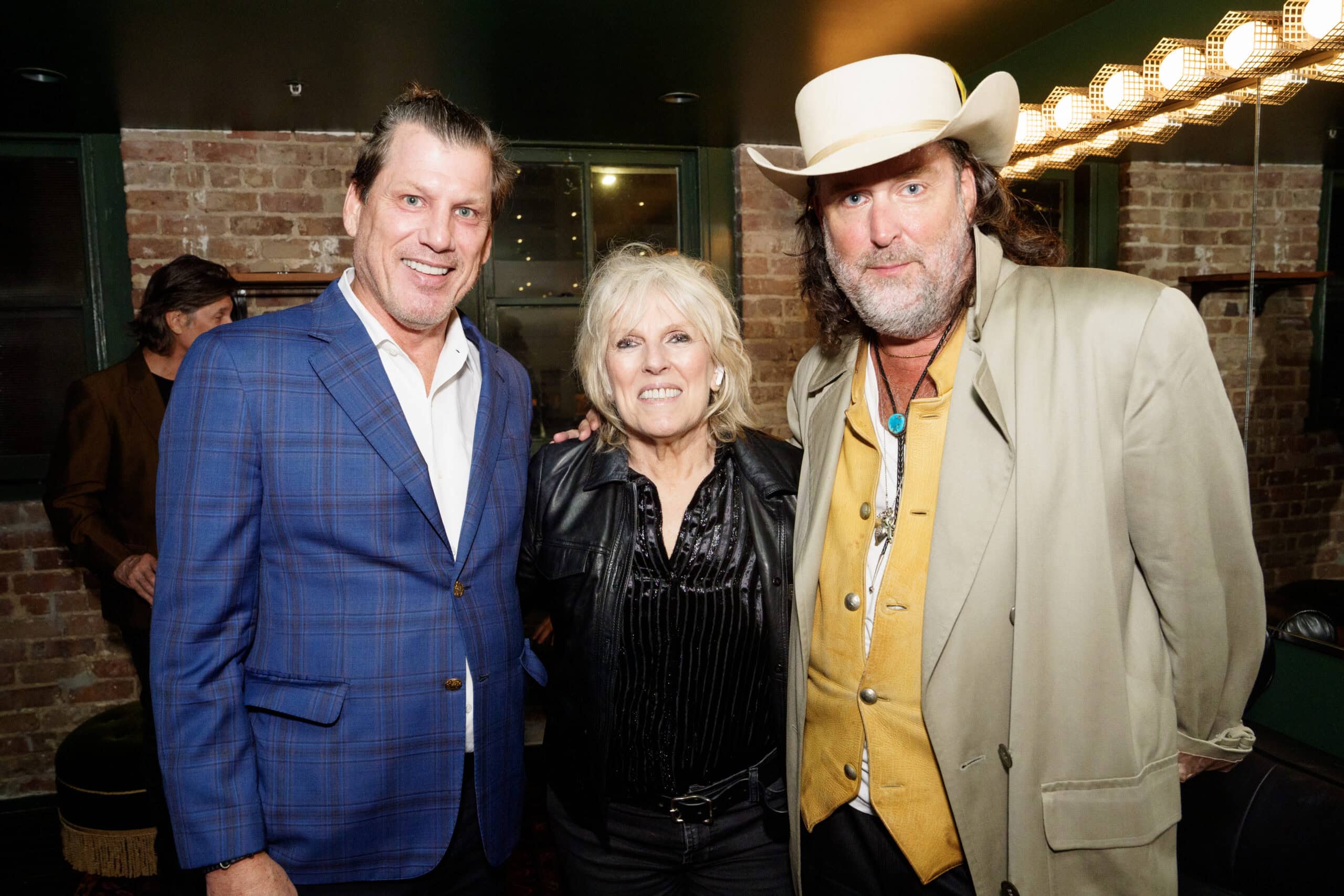 NEW ORLEANS, LOUISIANA - OCTOBER 24: Steve Rehage, Lucinda Williams and CC Adcock backstage the 2025 New Orleans Film Festival Gala at the Civic Theater on October 24, 2025 in New Orleans, Louisiana. (Photo by Erika Goldring)