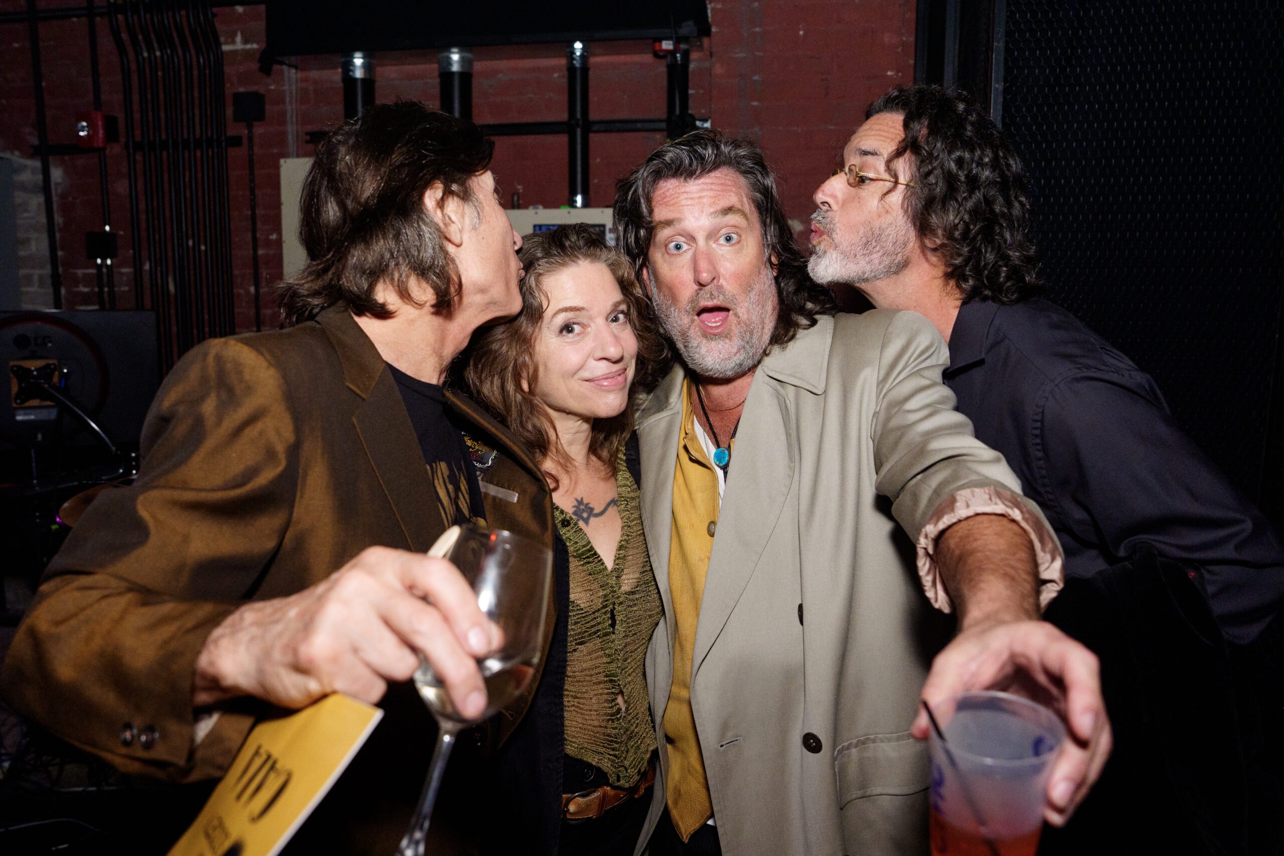 NEW ORLEANS, LOUISIANA - OCTOBER 24: Dave Clements, Ani DiFranco, CC Adcock and Mike Napolitano backstage the 2025 New Orleans Film Festival Gala at the Civic Theater on October 24, 2025 in New Orleans, Louisiana. (Photo by Erika Goldring)